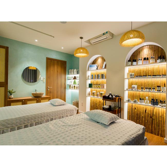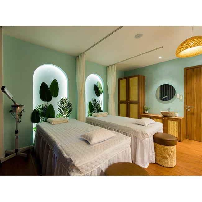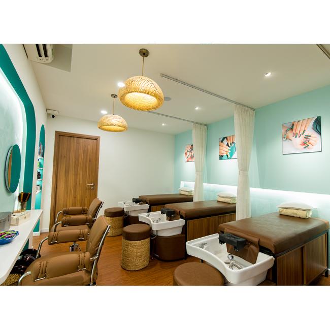 - 두피 마사지: 천연 원료를 사용한 두피 관리 및 천연 성분으로 된 샴푸와 함께 부드러운 마사지 및 두피, 어깨, 목, 등 부분에 가벼운 압박 마사지 기술이 결합되어 편안한 느낌을 제공합니다. 또한, 효과적으로 여러 유형의 질병을 치료하고 효과적으로 머리카락을 개선합니다.